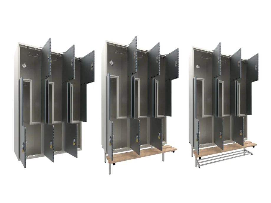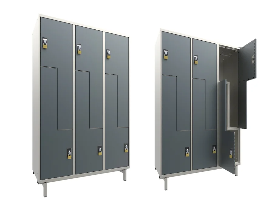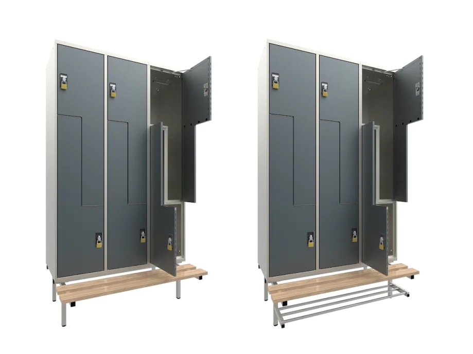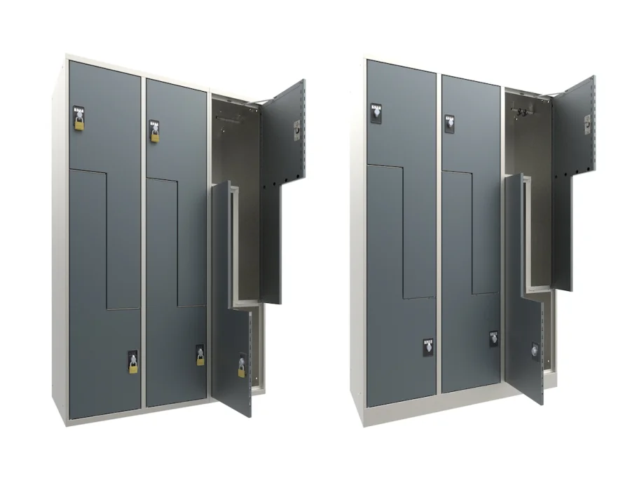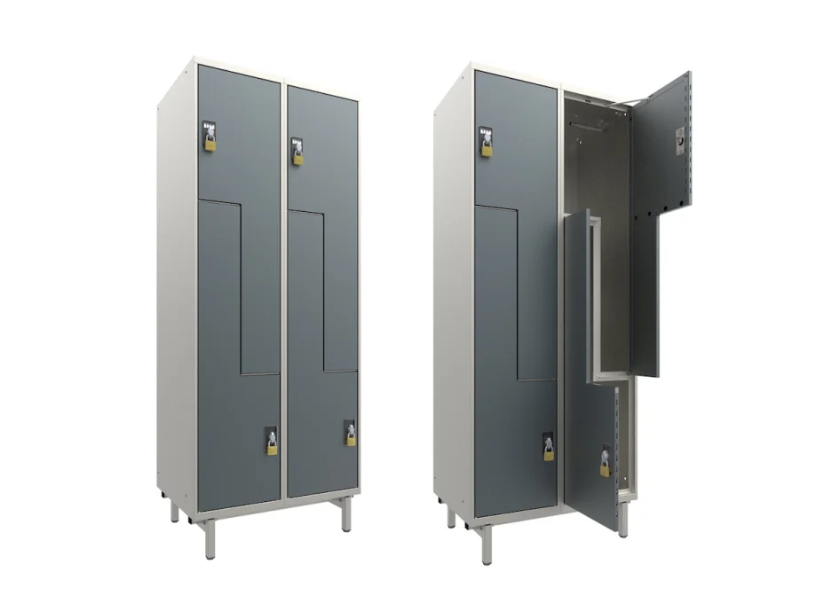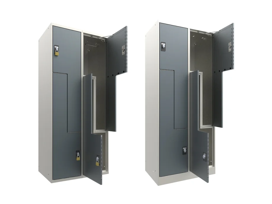 The L-shaped divided compartments give every user the option of storing their items either hanging or lying flat.