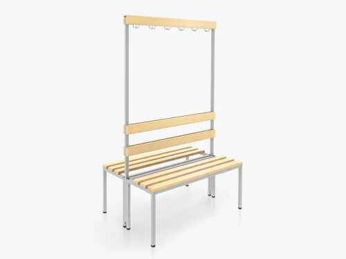 lfm. Rückenlehne und Hakenleiste auf Sitzbanksteher montiert